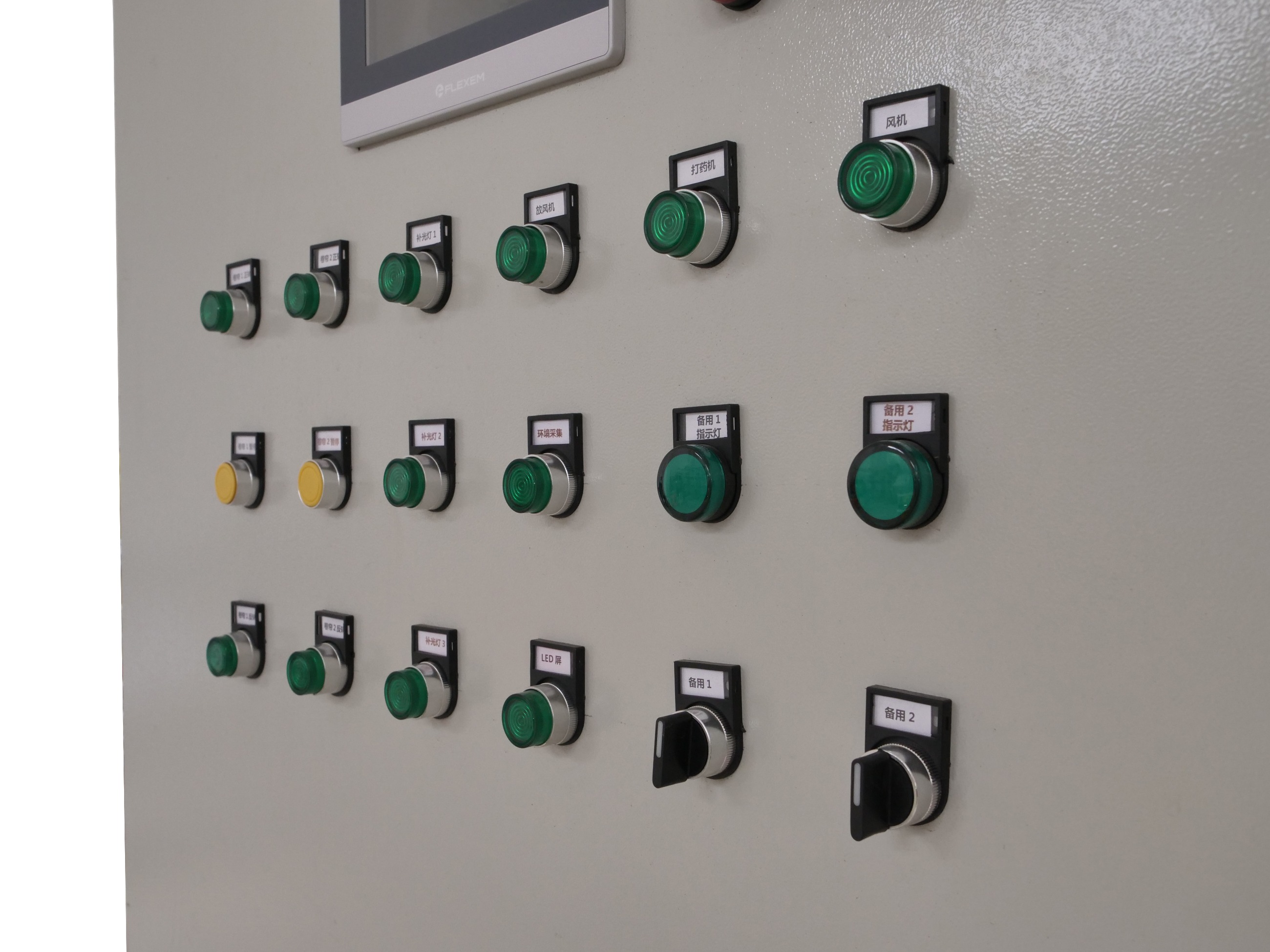 智能溫室控制柜可控制整個大棚內終端設備的運行;對溫控柜進行系統設置;搭配環境采集設備使用,編制傳感器節點程序,實現溫控柜自動控制;可控制頂卷膜器、遮陽、保溫等;存儲用戶所編制的自動運行程序;控制外部終端設備的啟停;接受外部控制信號;監控溫室內終端及整個系統的運行。可接入設備:與數字農場APP結合,實現遠程物聯網控制;卷膜器供電控制;遮陽供電控制;保溫供電控制;補光燈供電控制;打藥機供電控制;gprs遠程物聯網控制;人機交互,觸摸屏,微電腦邏輯控制器。